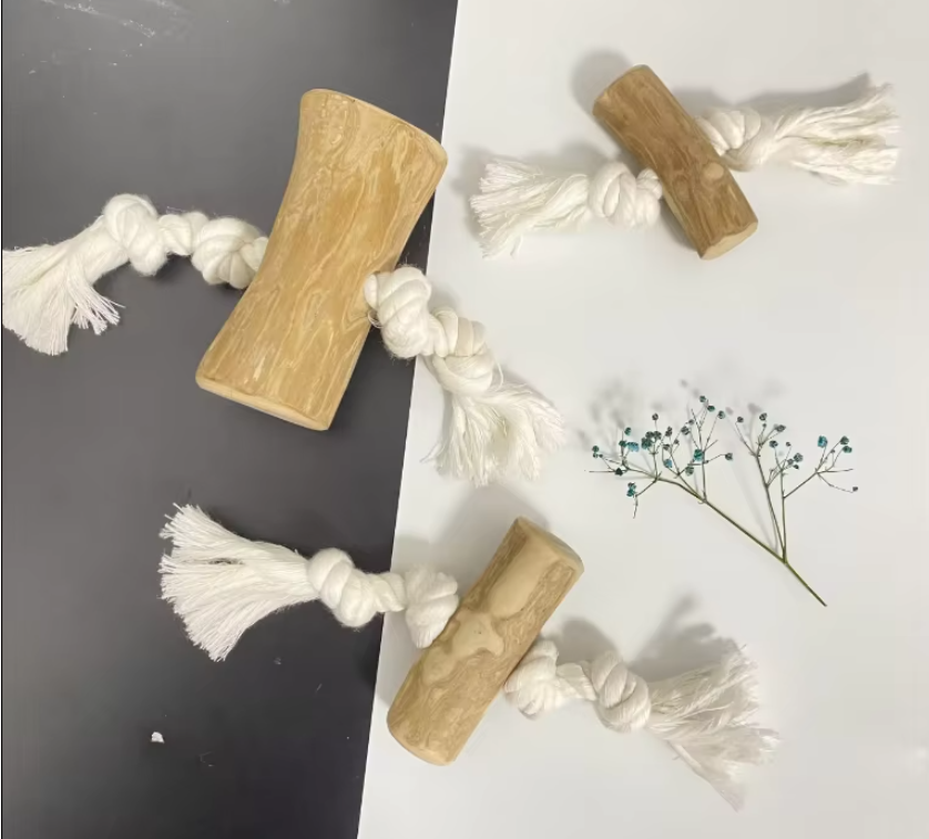 Natural Coffee Wood Chew Stick with Rope for Dogs – Safe, Durable, European & US Export Quality